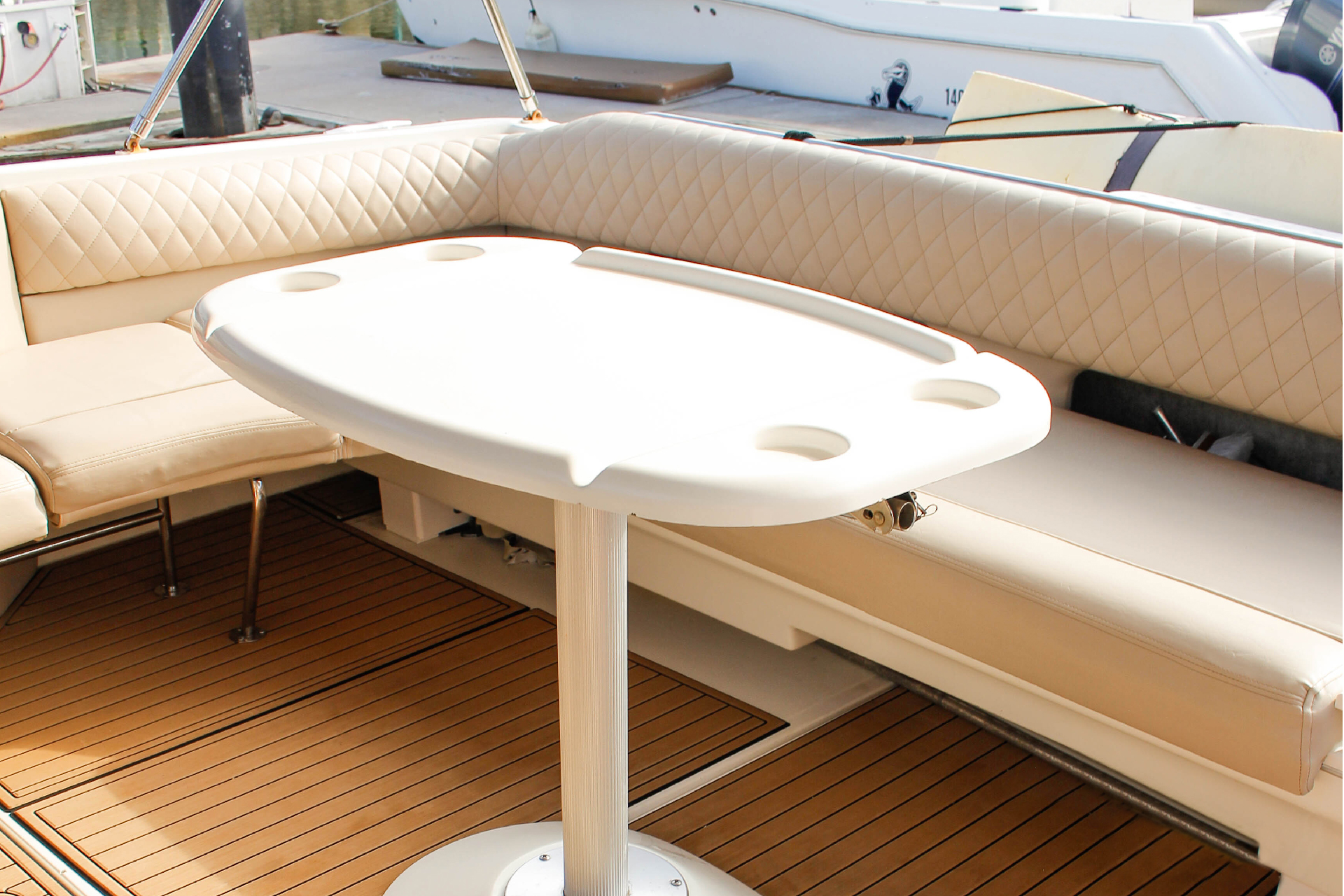 The yacht's layout offers different spaces: the air-conditioned main cabin to escape the heat, the private bow deck for sunbathing, and the aft area for socializing and cocktails. The premium sound system lets you create the perfect ambiance for any occasion.